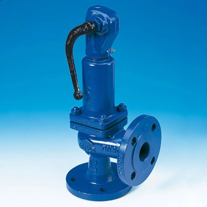 Válvula de segurança standard com flanges, castelo fechado, capuz fechado com alavanca conforme.